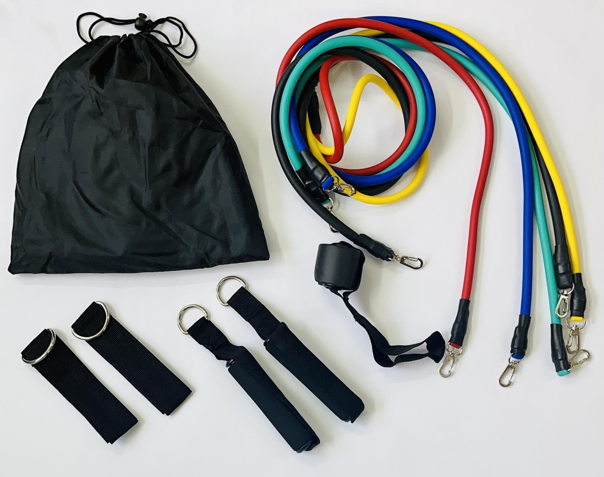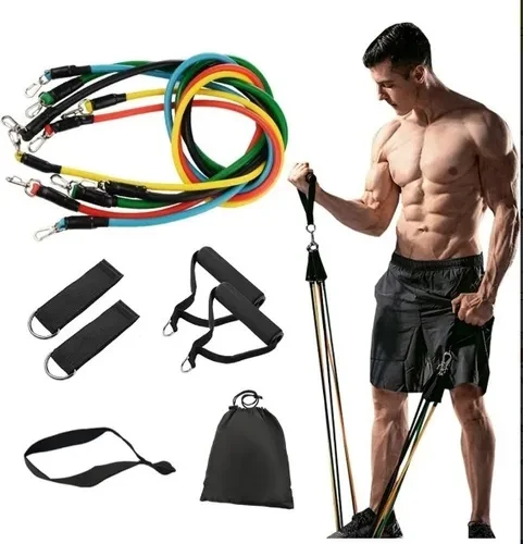 Kit Profesional de Bandas de Resistencia para Entrenamiento Muscular Fitness @@@ • CARACTERÍSTICAS @@ ¿No tienes tiempo para ir a tu gimnasio todos los días? Este Kit será tu gimnasio personal en casa. Con el puedes disfrutar de un entrenamiento completo sin siquiera salir de tu casa, con la ventaja de ser portátiles y económicas. @@ – Este kit profesional de bandas elásticas tubulares te van a proporcionar ejercicios multifuncionales para entrenar tanto TREN Superior como Inferior.