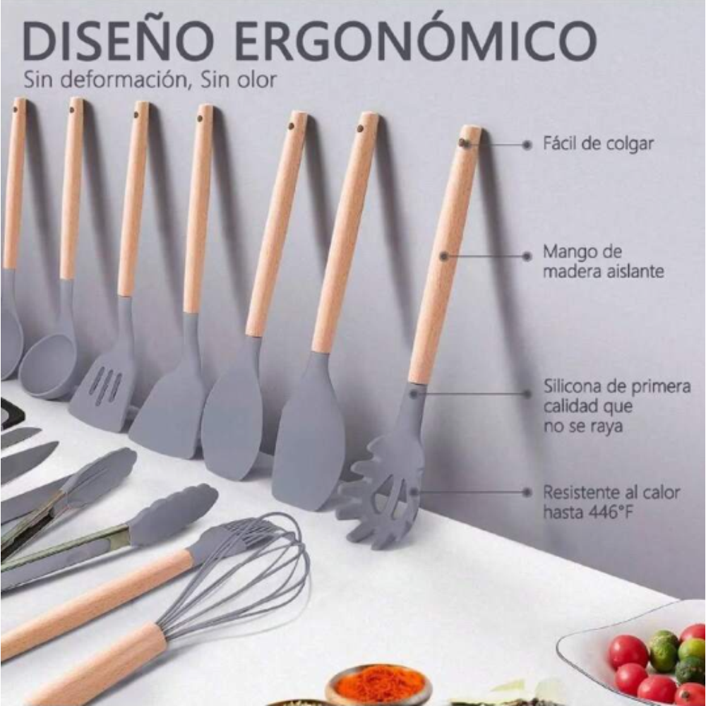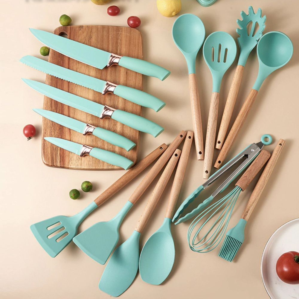 Set Utensilios Cocina En Silicona Y Juegos De Cuchillos 19pc