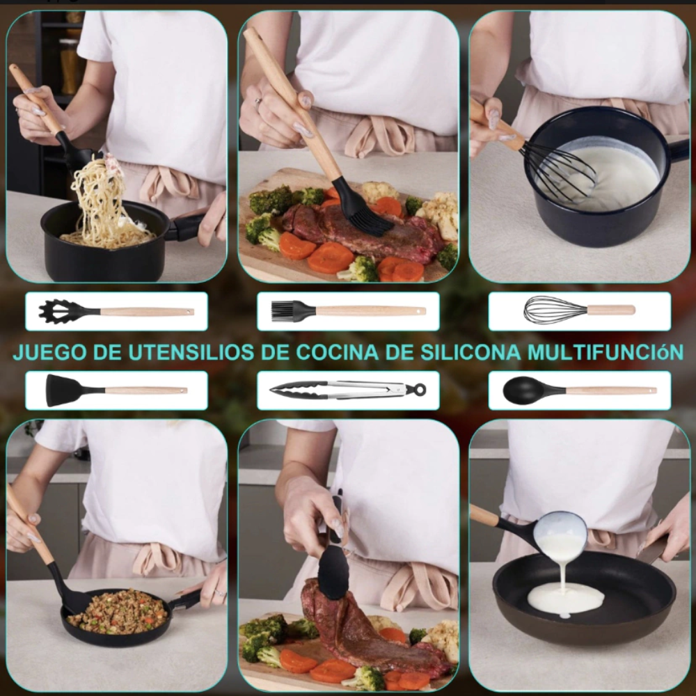 Juego de utensilios de cocina de silicona antiadherente de 11 piezas