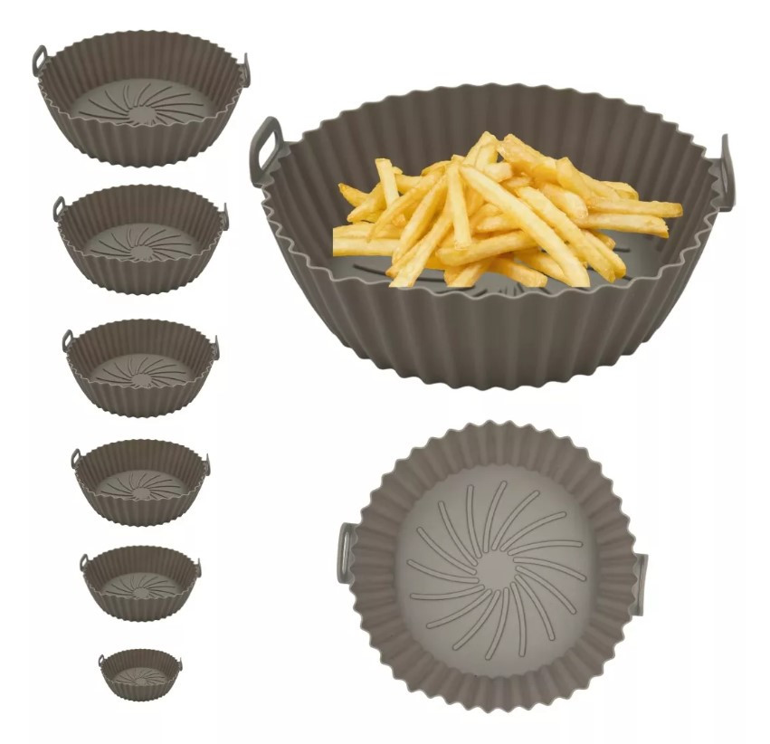 – Los revestimientos de silicona de esta freidora de aire tienen líneas elevadas para garantizar la circulación del aire y una distribución uniforme del calor para cocinar su comida a la perfección en menos tiempo.