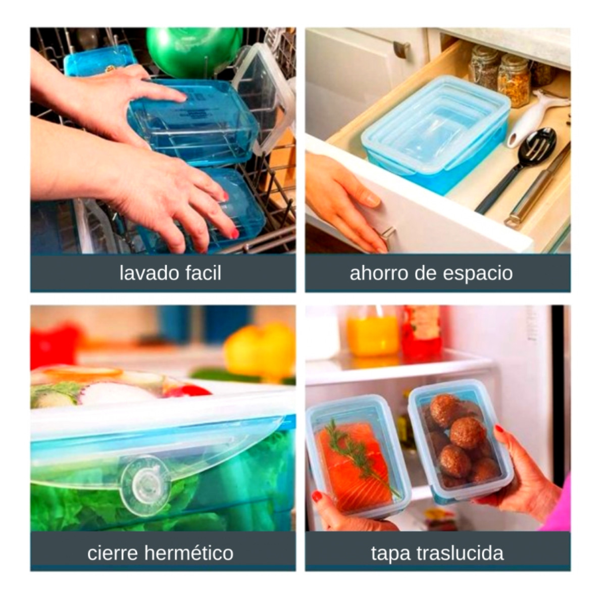 - Incluye 6 contenedores 4 rectangulares y 2 cuadrados: