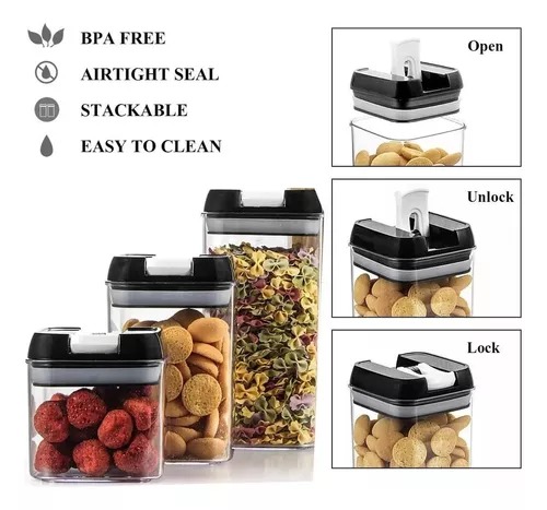 Estos recipientes herméticos para alimentos no solo son ideales para almacenar alimentos secos como harina, frijoles, cereales, galletas saladas, bocadillos, pasta, café, arroz, azúcar, etc., sino que también son excelentes contenedores de almacenamiento para nevera y congelador. para sus verduras, ensaladas y frutas. Organiza tu refrigerador o congelador, o cualquier otra cosa que puedas necesitar, permitiéndote organizar tu cocina y despensa como nunca antes.