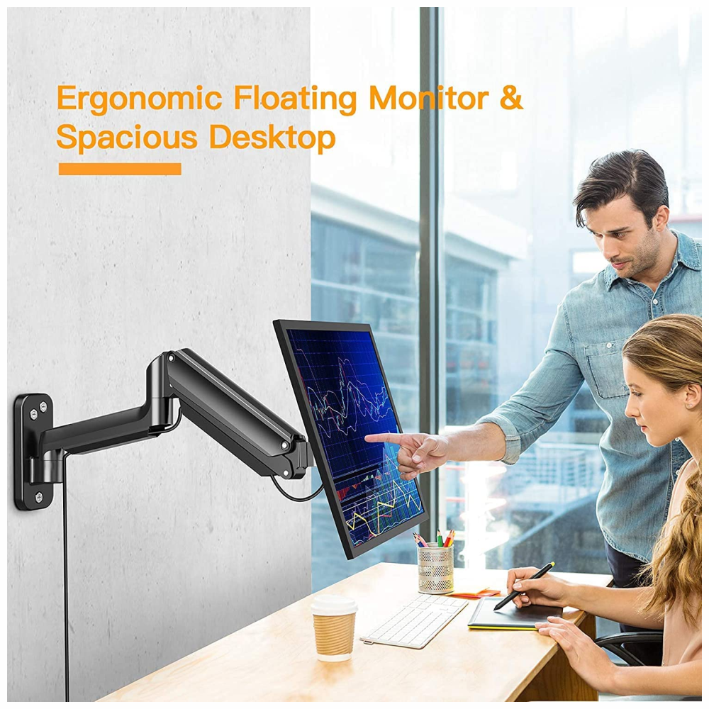 Ahorre espacio: en comparación con el monitor sujeto al escritorio, el soporte montado en la pared puede ahorrar un espacio valioso en el escritorio. No necesita preocuparse de que el soporte esté cerca de la pared y no se pueda extender. Al mismo tiempo, es más estable y permanecerá quieto mientras escribe.