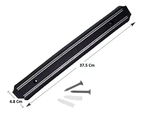 Especificaciones: 37.5 CMS DE LARGO X 4.7 CMS DE ANCHO X 1.4 CMS DE FONDO. ahorra valioso espacio en los cajones y proporciona un acceso más cómodo a tus cuchillos. Solución simple para ayudar a evitar el cortador de un bloque de cuchillos voluminosos. La potente tira magnética se utiliza para sujetar de forma segura tus cuchillos y otros utensilios metálicos de cocina, incluyendo batidos, espátulas, cucharas y cucharas. Utiliza este soporte magnético en la cocina, oficina, lavandería o garaje para guardar cualquier objeto de metal. Y asegúrate de que los niños pequeños no tengan acceso a tus cuchillos afilados. Una gran herramienta de cocina o regalo de Navidad para los nuevos propietarios de hogares. Fácil instalación.