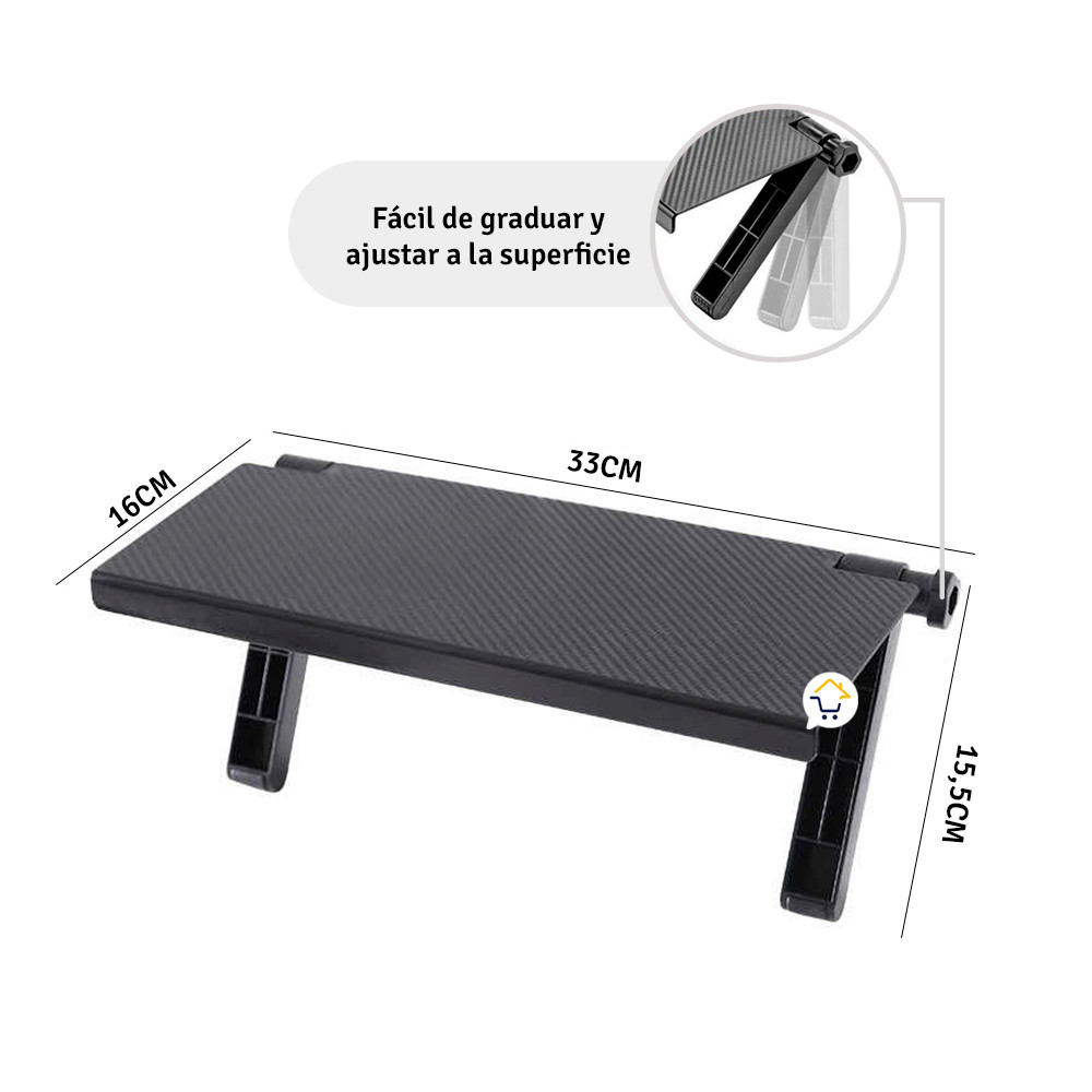 - Se adapta a todos los computadores, televisores o superficies, gracias a que las patas se pueden ajustar libremente.
