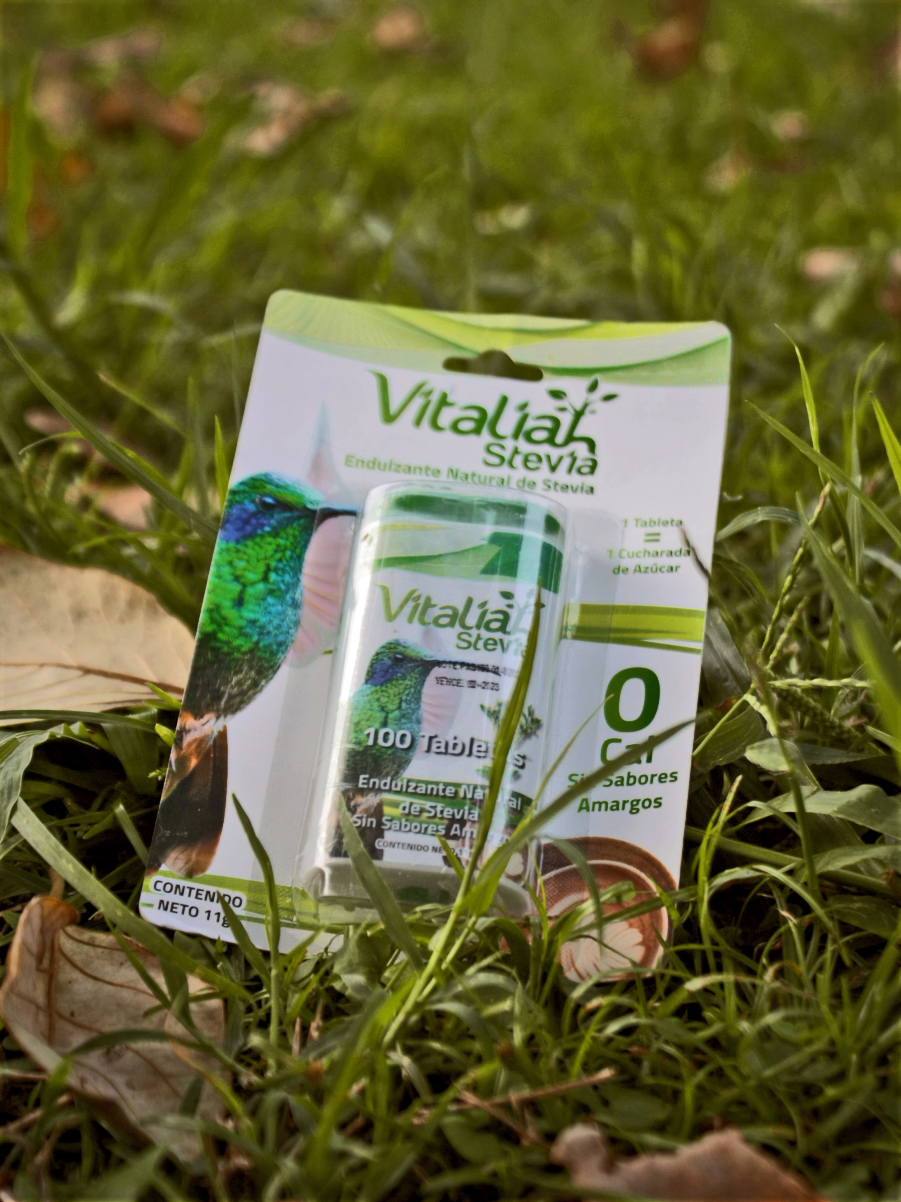 Endulzante natural de Stevia. La Stevia es una planta cultivada en Colombia, de sus hojas se obtienen un endulzante natural y sin calorías, el cual puede usarse en todos los alimentos y bebidas.