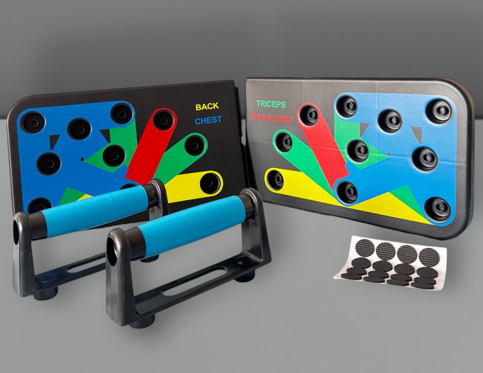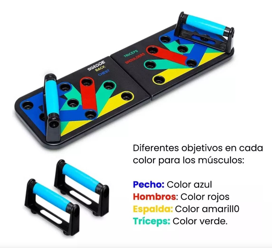 Descripción del Producto: La Push-Up board | Tablas de flexión esta diseñada para ejercitar e isolar ciertos musculos del cuerpo usando la posicion de las manos y muñecas para hacer el ejercicio mas efectivo y enfocado
