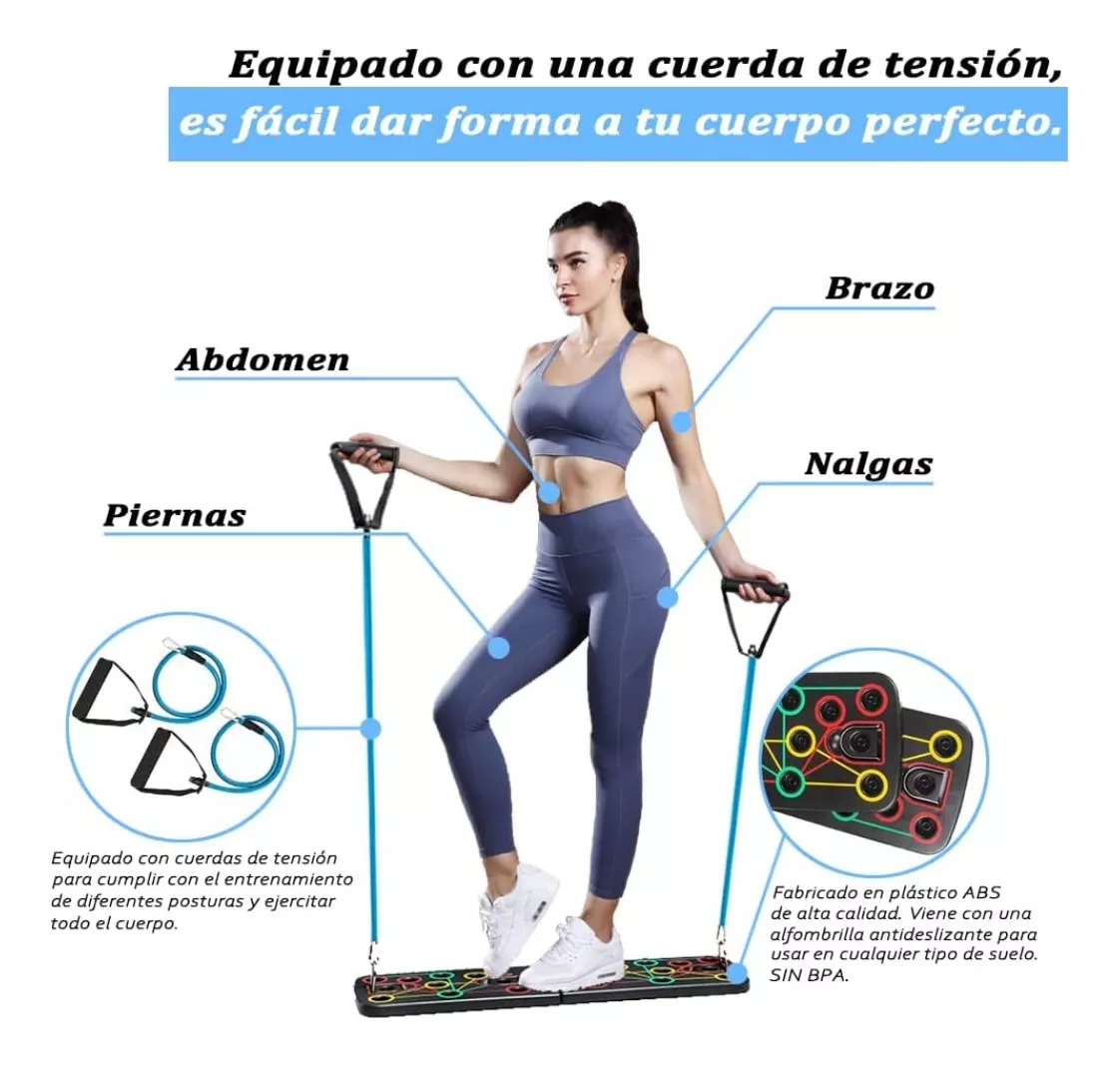 Quemar calorías y desarrollar fuerza con este innovador sistema de flexiones , que lo llevará a través de un entrenamiento de acondicionamiento y fuerza de todo el cuerpo