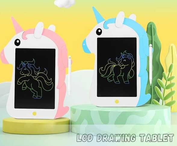 Tablero de escritura LCD de unicornio de dibujos animados para niños, juguetes de dibujo reutilizables, herramientas de pintura de aprendizaje educativo