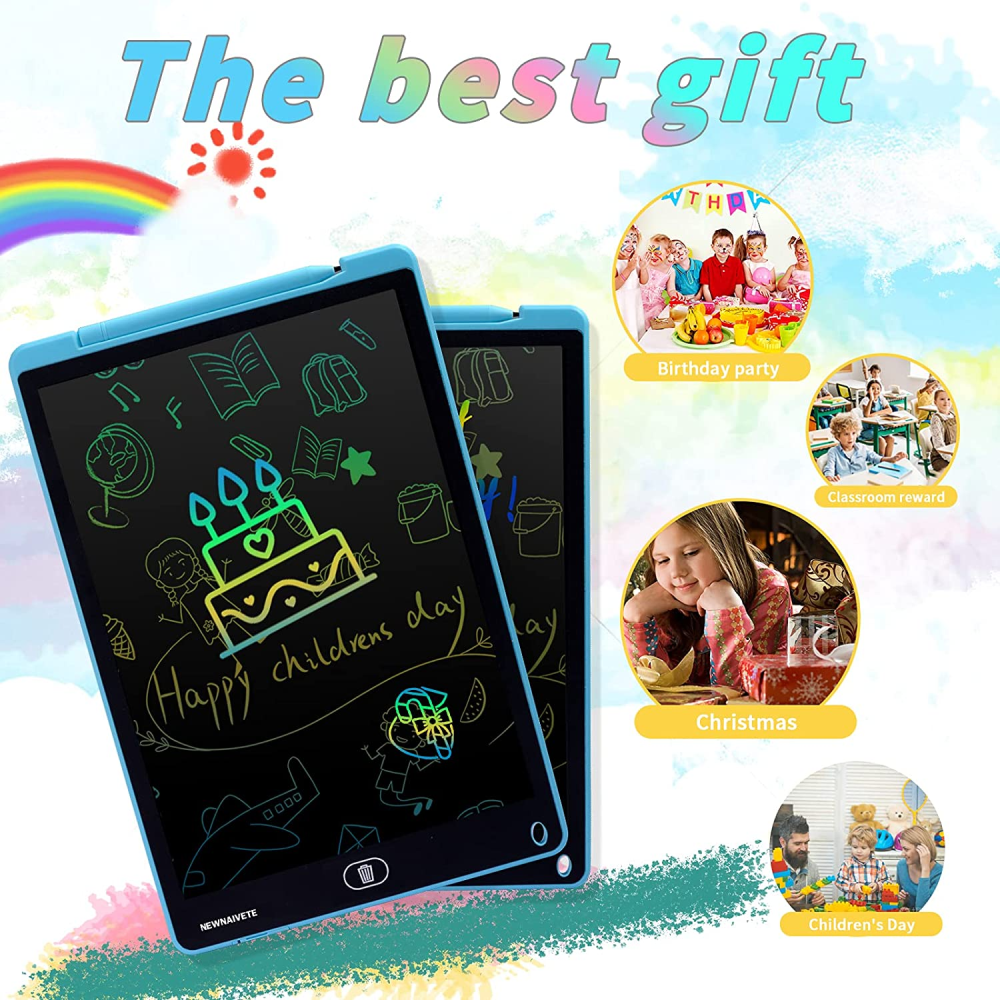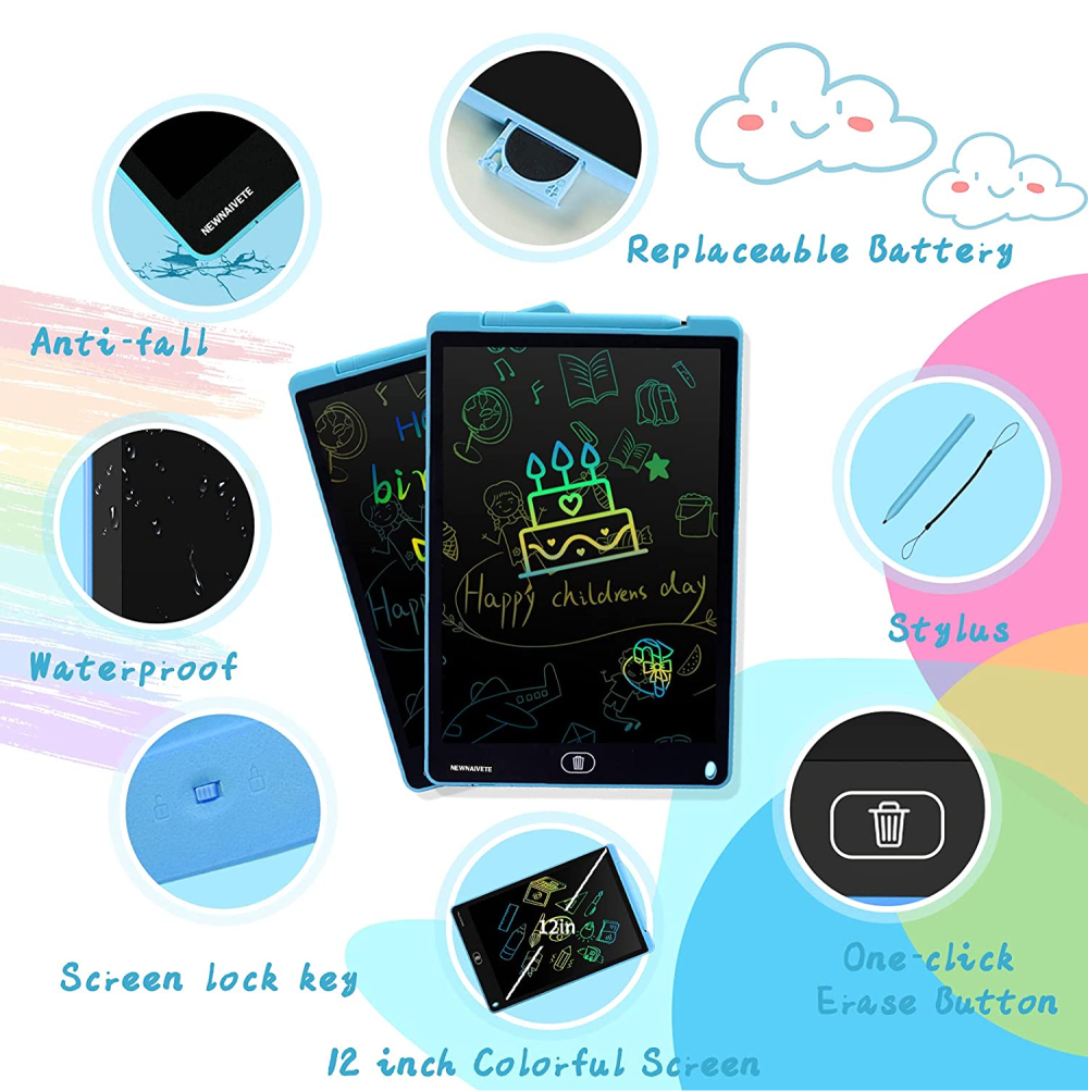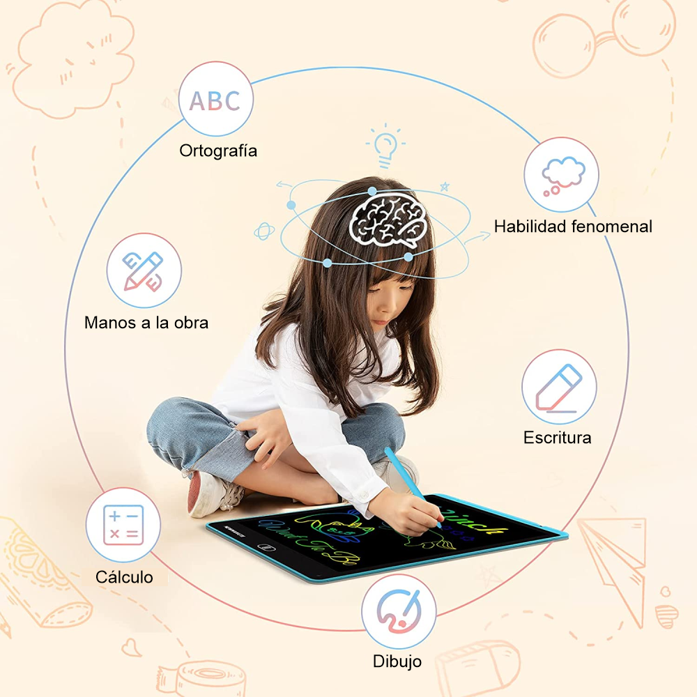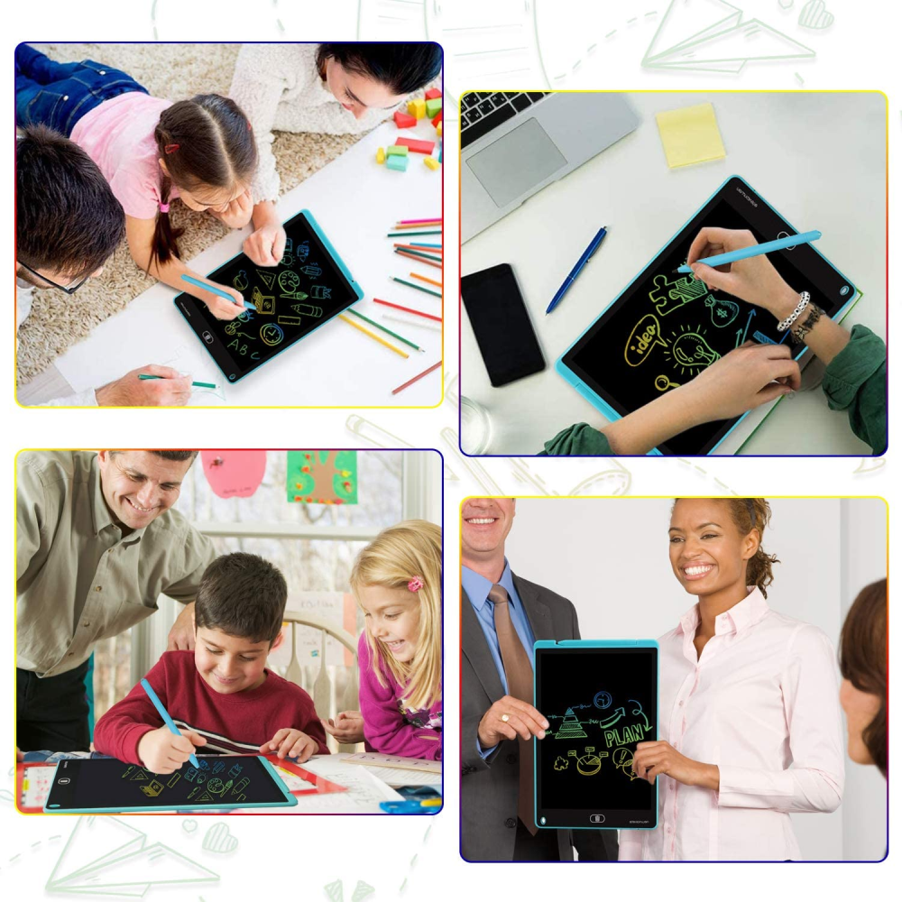 Pantalla LCD colorida de 12 pulgadas: la superficie de la tabla de garabatos creará líneas de diferente grosor según tu empuje. La pantalla sensible a la presión es un 50% más brillante y más clara que la mayoría de las tabletas de escritura LCD.
