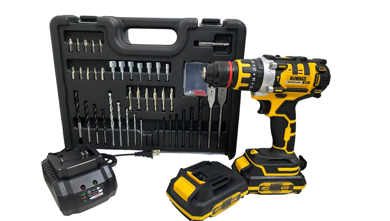 Taladro Inalámbrico 60 Voltios con Percutor Marca dewalt mandril metalico 1/2″ 40 Accesorios Incluidos.