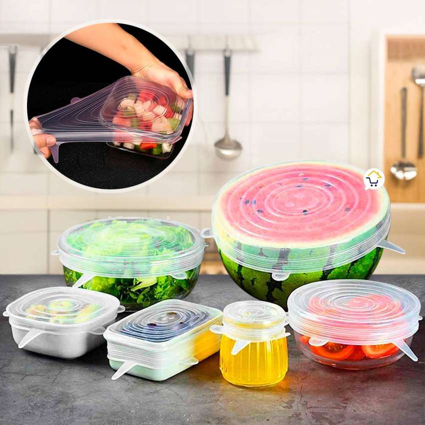 2. 6 tamaños diferentes: El juego incluye 6 fundas de silicona transparente en varios tamaños. Gracias a su material elástico, las tapas para alimentos se adaptarán fácilmente a la mayoría de cuencos, ollas, contenedores, tazas, tazas, latas, tarros, E incluso puede usarlos para cubrir su medio cortar melón o sandía.