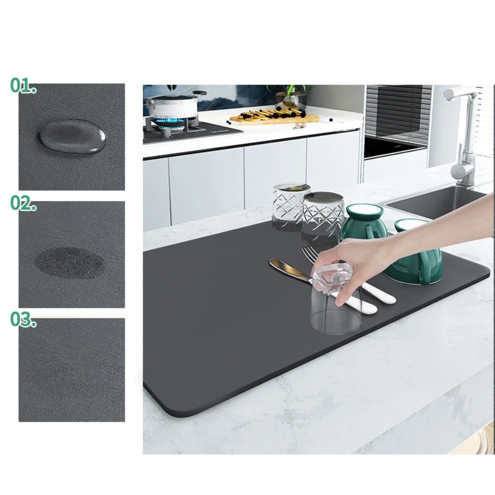 1. Caucho Material: Esta almohadilla de drenaje de cocina es duradera, suave y plegable.