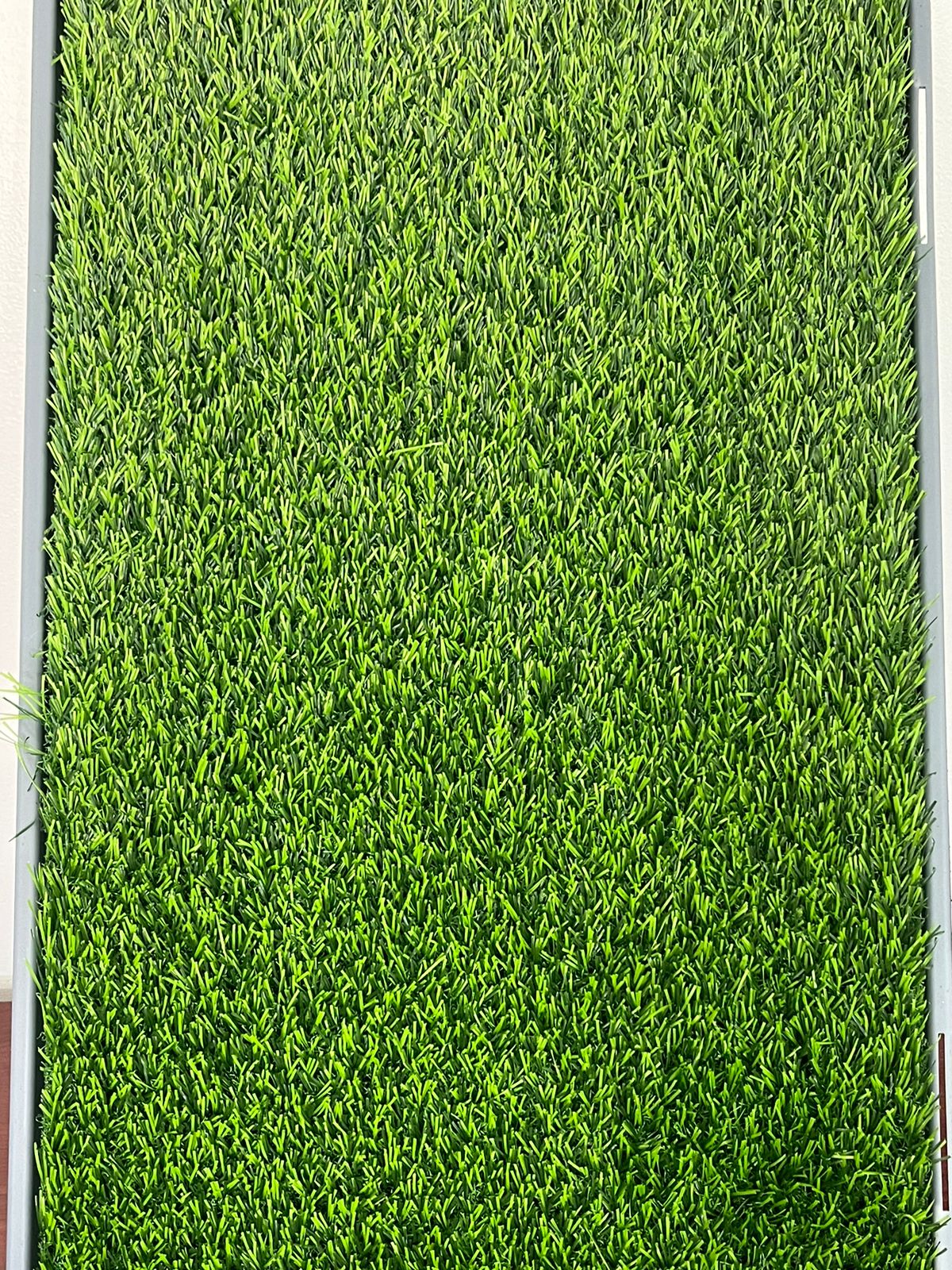 * Césped artificial suave diseñado para el flujo de líquidos.