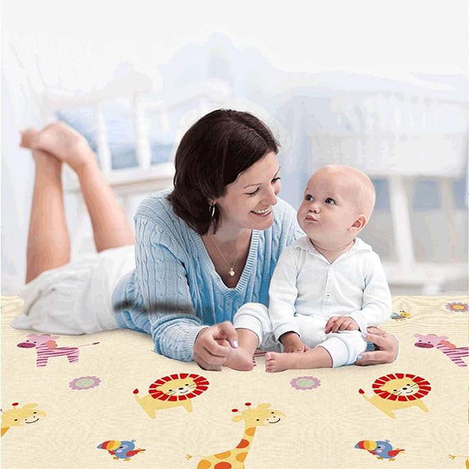 -La alfombra superfácil de doblar se puede empaquetar en un tamaño compacto, no ocupa mucho espacio para almacenar. El Tapete de Gateo es ideal para el desarrollo de los niños pequeños. Está hecho de materiales suaves y de alta calidad con bordes acolchados para mayor comodidad. Está perfectamente diseñado para bebés, con material antideslizante y antiderrame, para que los pequeños puedan gatear con seguridad.