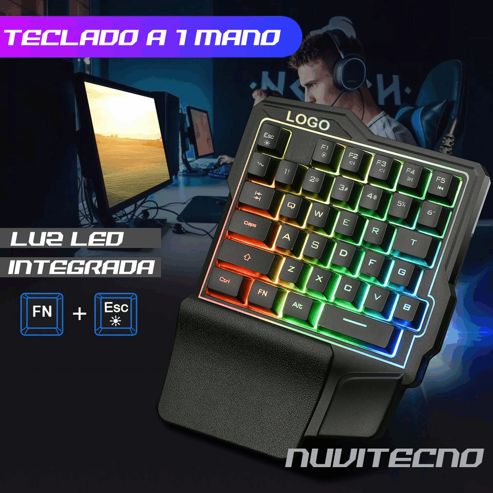 TECLADO PARA JUEGOS DE UNA MANO CON RETROILUMINACIÓN LED LUCES PARA WINDOWS PC Y MOVIL