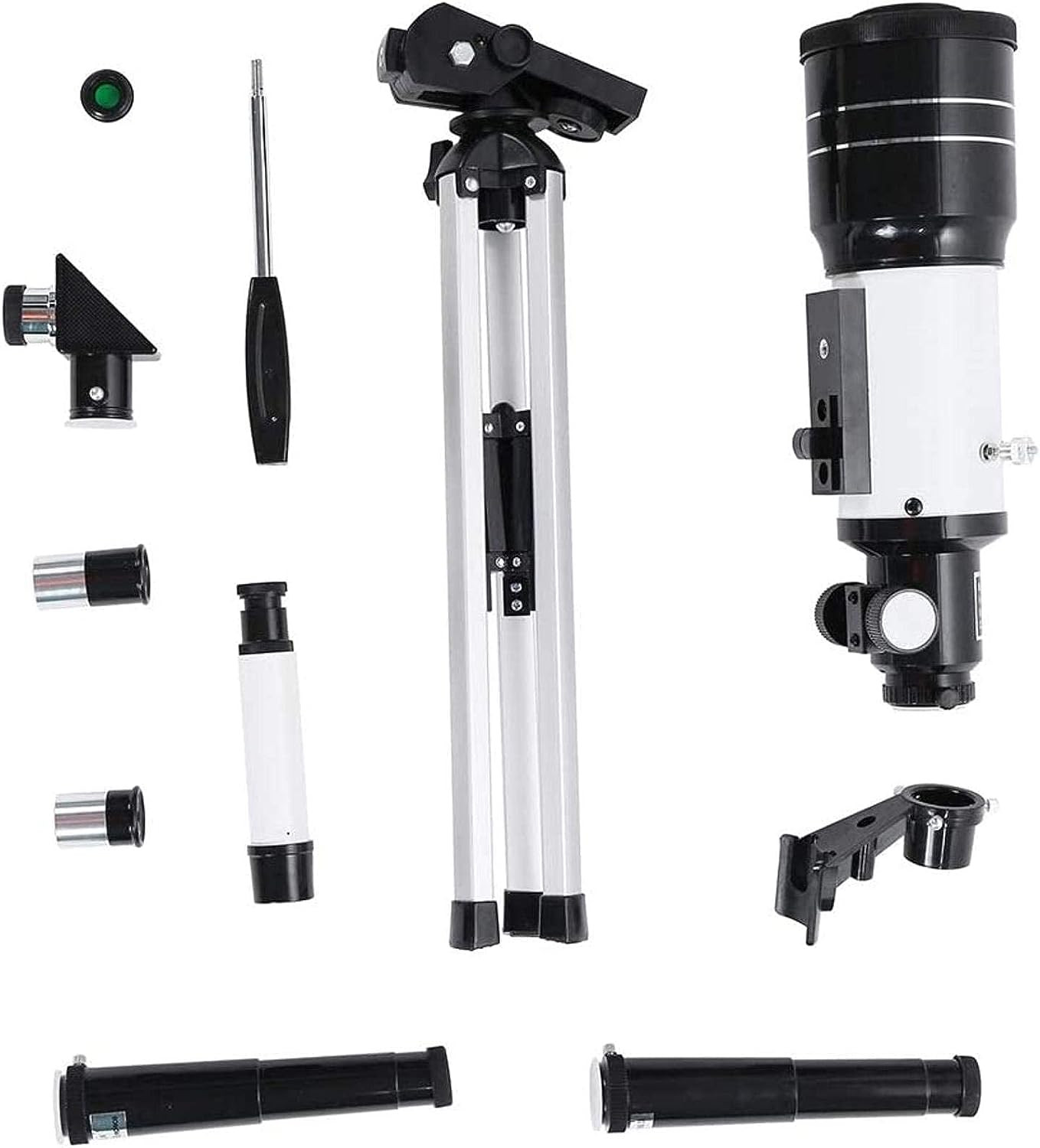 Telescopio hecho de aleación de aluminio y plástico ABS, y equipado con un trípode ajustable, el telescopio es fácil de llevar, instalar y poner al aire libre, ideal para aquellos que quieren observar al aire libre.