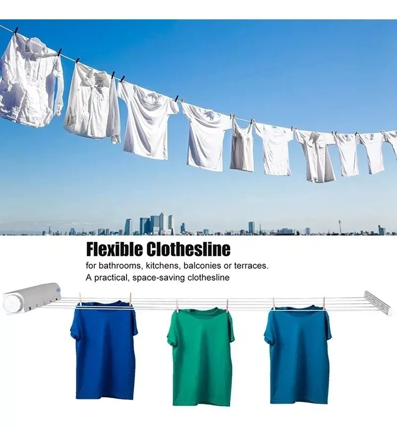 El tendedero puede bloquearse a la longitud requerida y fijarse en su lugar para facilitar su uso. La percha retráctil se puede sacar y usar en cualquier momento y lugar, y se puede guardar cuando no se usa. Ahorra espacio y es muy práctica. Es la mejor opción para todas las familias.