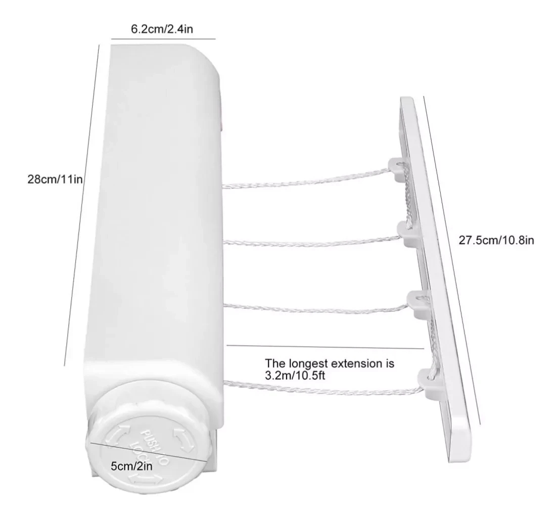 •Se retrae fuera de la vista: el tendedero retráctil automático está disponible cuando lo necesites y luego se retrae fuera de la vista cuando hayas terminado de tu ropa. No hay necesidad de configurar estantes pesados o desperdiciar espacio para almacenamiento.