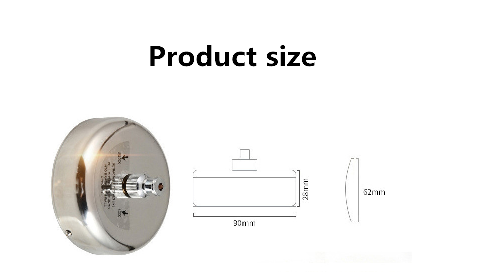 Cuerda retráctil duradera: fabricada en acero inoxidable pulido para mayor durabilidad. Diseño extensible con cables retráctiles. Úsalo cuando lo necesites y se enrolla rápidamente cuando no esté en uso.