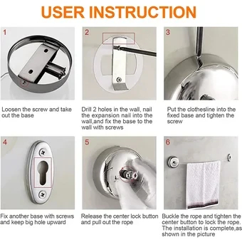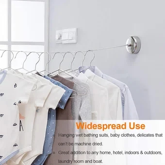 - ✔️ Tendedero retráctil de acero inoxidable con cuerda ajustable de alta resistencia.