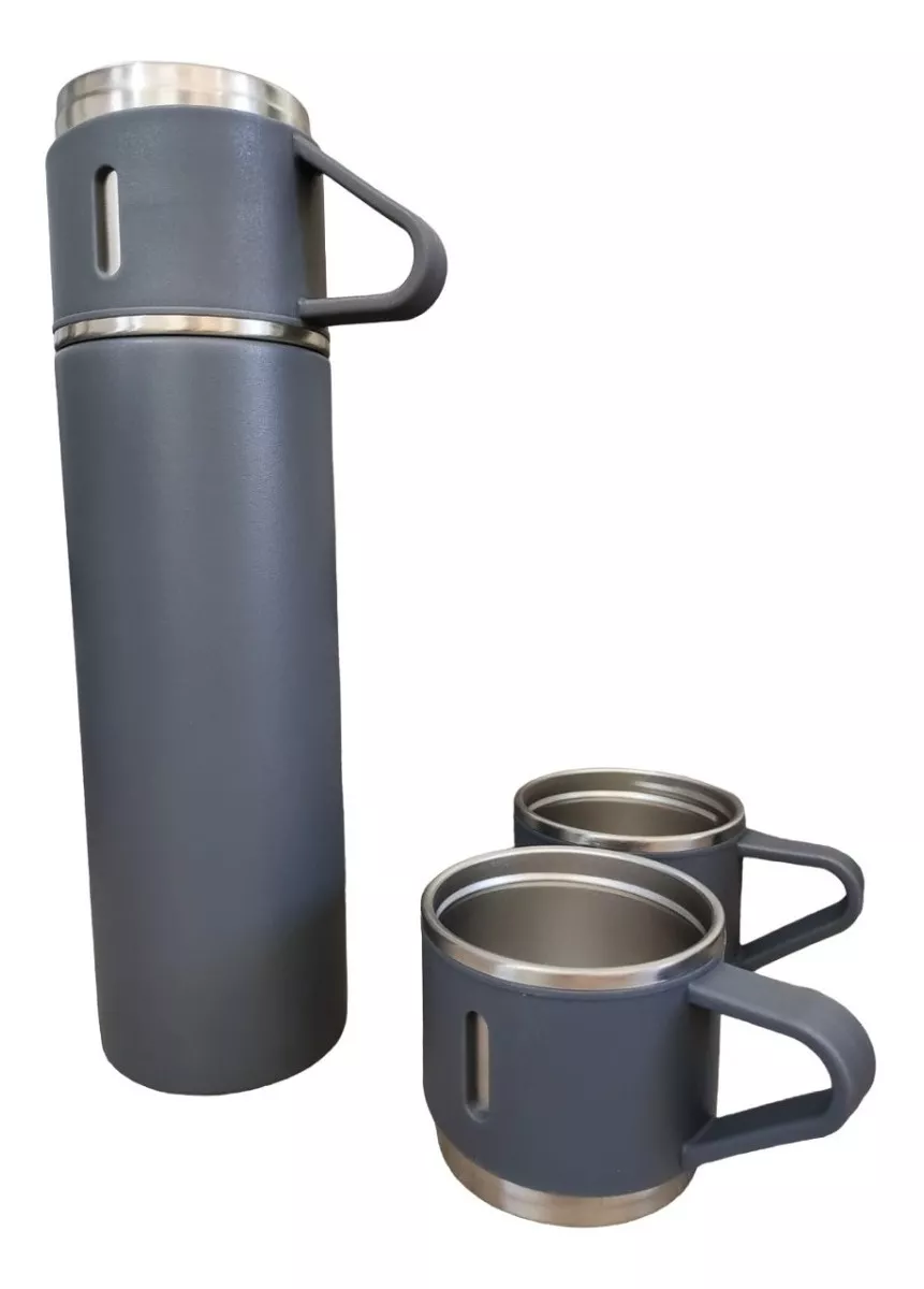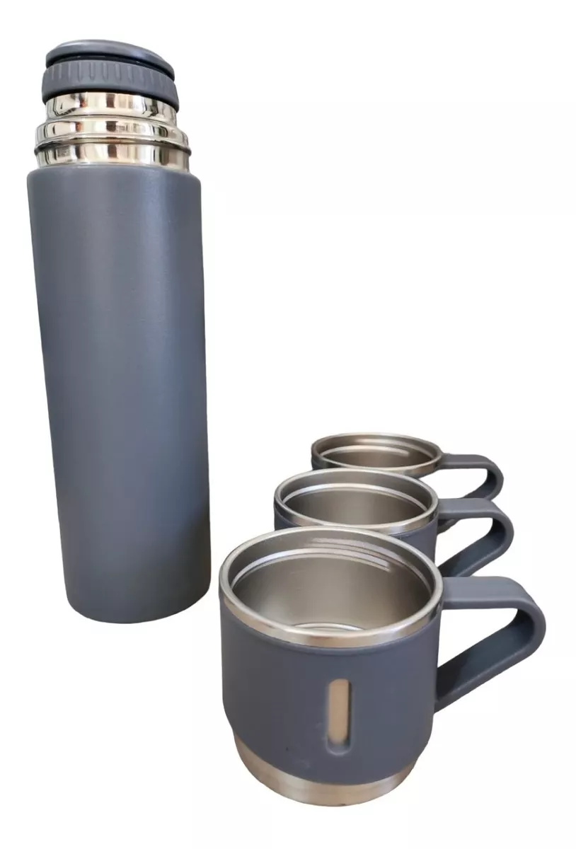 Novedoso termo con capacidad 500 ml, ideal para bebidas frías o calientes, acero inoxidable, fácil de servir e incluye tres tazas que funcionan como tapa e incluye la caja como se muestra en la imagen, excelente calidad.