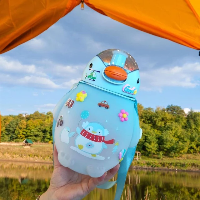 Esta botella de agua está hecha en material resitente y seguro de usar. Equipado con un anillo de sellado fiable que garantiza que no haya fugas. Bonito diseño de pingüino con hermosos colores a juego, perfecto para niños o estudiantes.