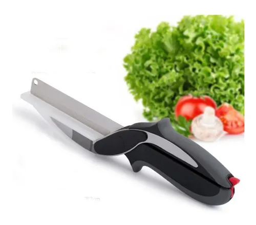 CUCHILLO TIJERA CON TABLA PARA PICAR @@ Revolucionario e innovador utensilio de cocina que permite cortar tus verduras favoritas, sorprende a tu familia y amigos con la calidad de todas tus recetas favoritas. @@ * CARACTERÍSTICAS *: @@ – Cortes de alta precisión @ -Botón de para asegurar el cuchillo @ -Resorte de presión para cortar @ -Cuchillas en acero inoxidable @ -Seguro para usar en @lavava lavavajillas -Diseño @ ergonómico -MEDIDAS DE LA TABLA: Largo: 10cm x Ancho 2.5cm @ – MEDIDAS DEL CUCHILLO: Largo: 10cm x Ancho 2.0cm