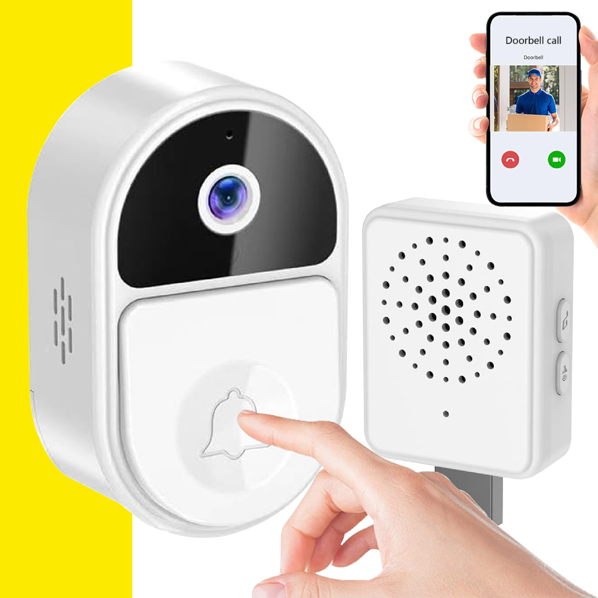 Videollamada remota: Después de que el visitante presione el timbre, este timbre de video enviará una notificación a tu teléfono móvil, y puedes ver y comprobar la situación en la puerta a través de la aplicación del teléfono.