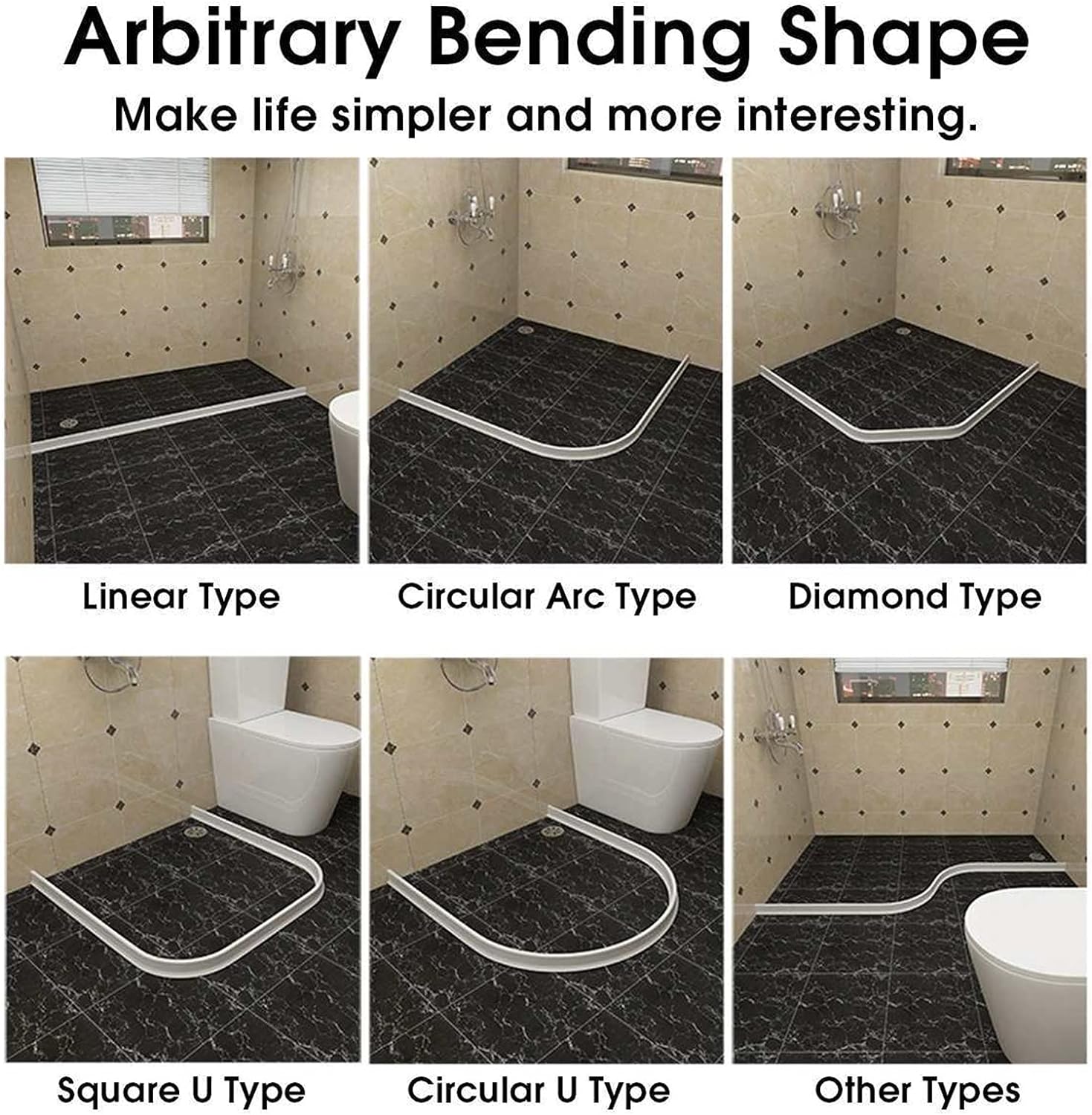 - ★ Tira de retención de agua ligeramente inclinada, lavabo de cocina de encimera de umbral de ducha de baño, retención y liberación de agua, separación seca y húmeda mantiene la habitación seca