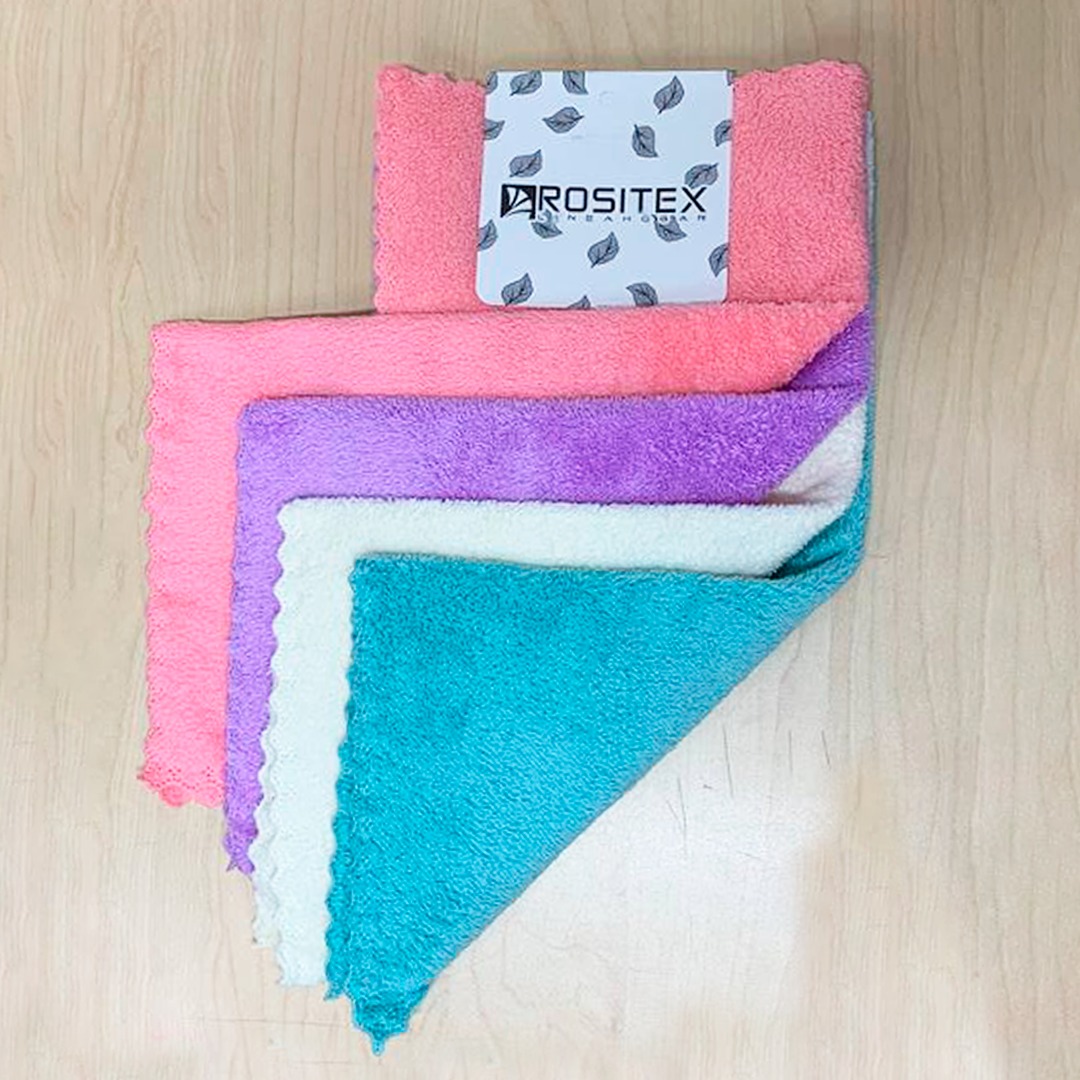 Toalla paños en microfibra. Viene por 4 uniodades, surtida en colores.