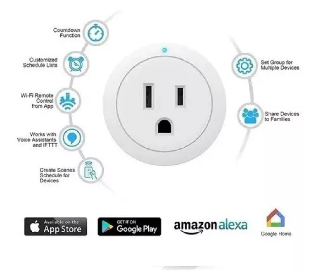 Para poner él toma en modo de configuración debes conectarlo y oprimir el botón durante 5 segundos hasta que el indicador led del toma quede intermitente, importante: el bluetooth debe estar activo, se hace la búsqueda por la aplicación buscando enchufe wifi, una vez se conecte a la red, puedes agregar temporizadores o llevarlo a Google home O Alexa, por su compatibilidad funciona para comando de voz con asistente virtual Google o Amazon – Alexa desde los skills.|CONTENIDO DE LA COMPRA|