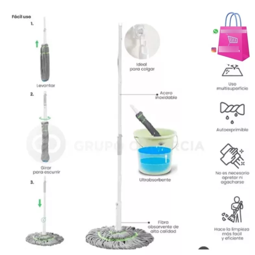 Trapeador fácil de escurrir: las trapeadoras con escurridor eliminan el agua del cabezal del trapeador mientras mantienen tus manos secas. Perfecto para controlar el uso del agua.