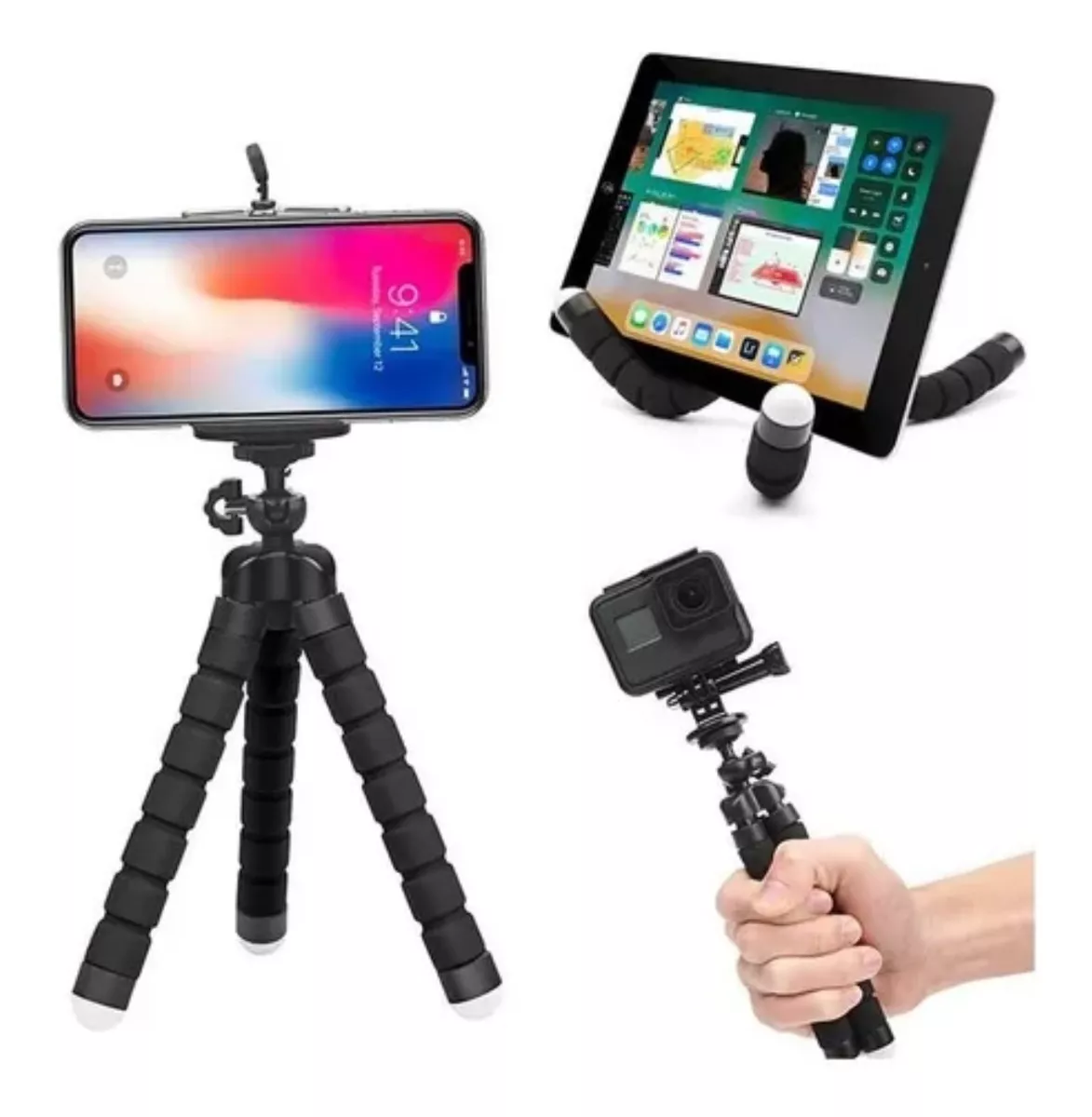 Monte su Smartphone o dispositivo móvil en el mini trípode con este Soporte para celulares. Este accesorio es diseñado y fabricado para trabajar con iphone, Android, BlackBerry, Windows Phone, FLIP Mino, Ultra Hd, y todos los modelos De iPod Touch.