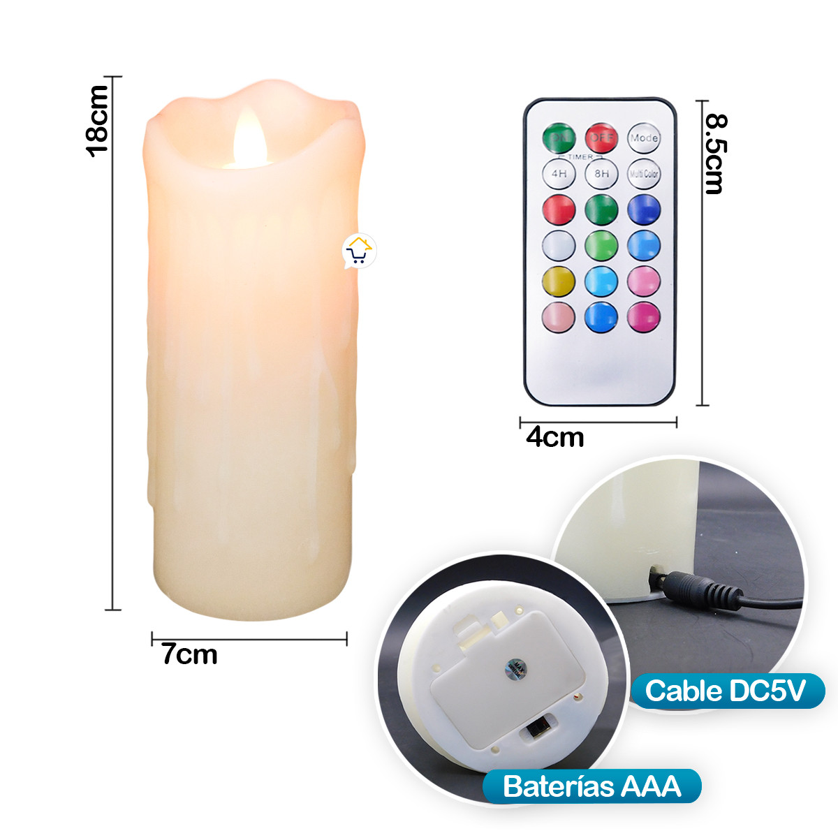 - Esta vela led cuenta con 12 tonos diferentes de luz.