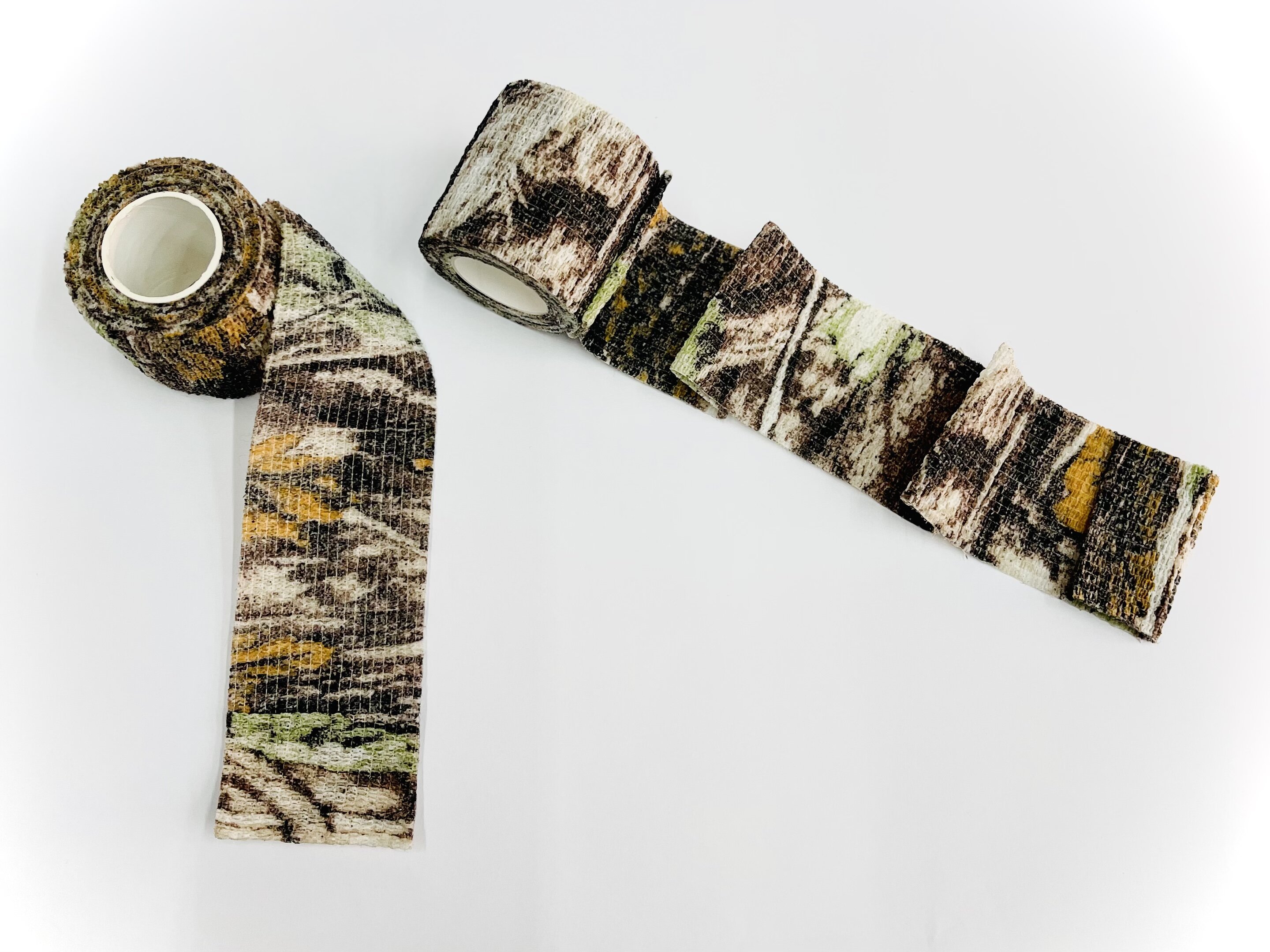 - Rollo de cinta tipo venda elástica reutilizable y autopegable. Color camuflada.