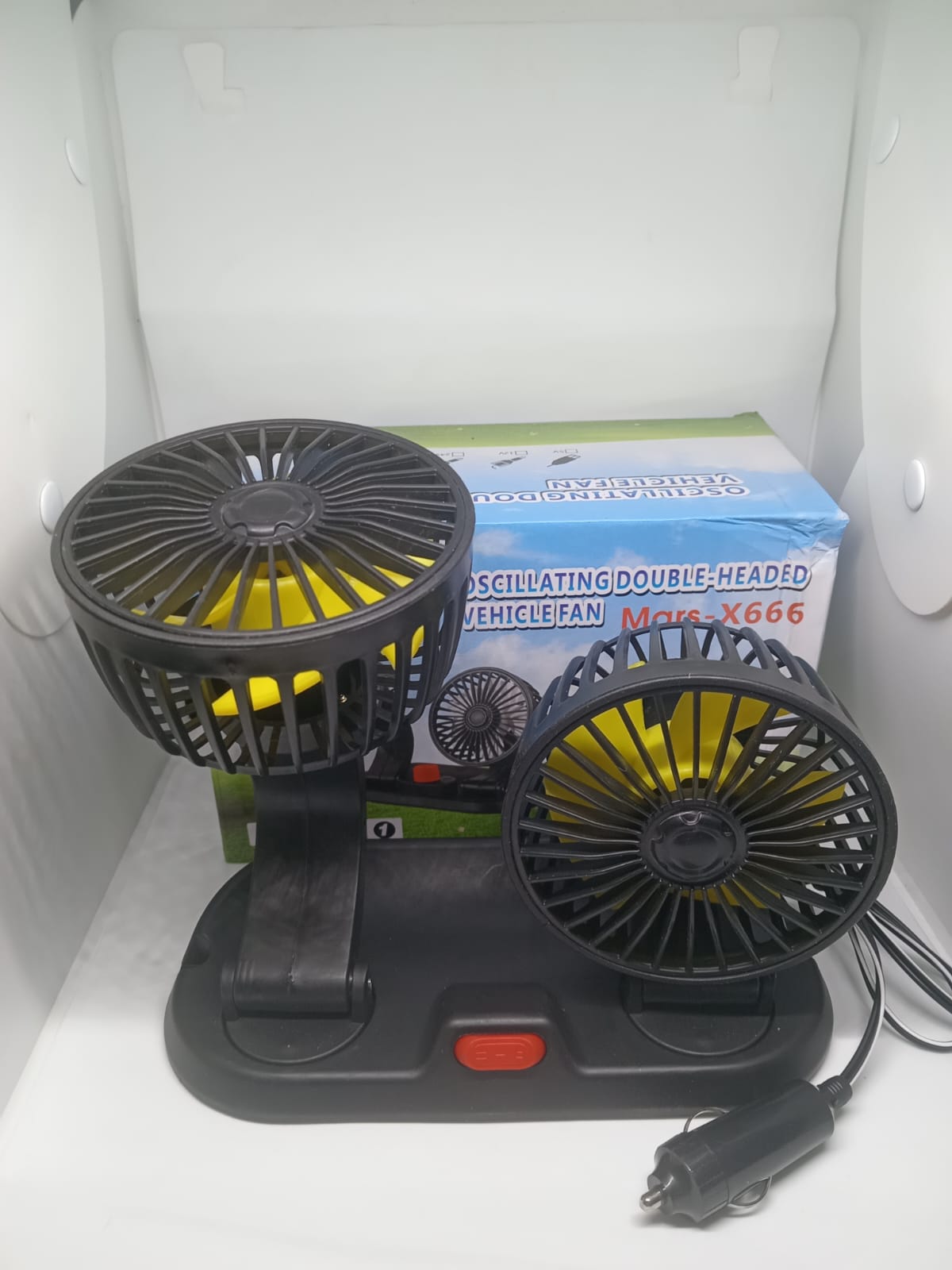 Ventilador doble cabezal, conexión a 12 voltios , doble uso disponible,bajo nivel de ruido ,escualisable ,viento huracanado ,2 velocidades,ajuste completo, disponible en color negro, referencia Mars -x666. Viento fuerte ultrasilensioso,diseño de doble cabezal escualisable ,para uso en en pareja ,uso multifuncional, camiones , automóviles etc…