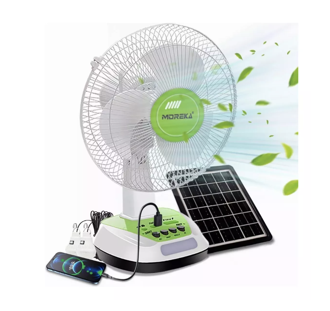 Sostenible y Ecológico: Equipado con un panel solar de alta eficiencia, este ventilador te permite disfrutar de una brisa refrescante sin depender exclusivamente de la electricidad. Al utilizar la energía solar, no solo ahorras en costos de energía, sino que también reduces tu huella de carbono.