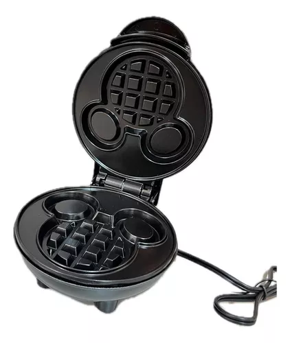 La Wafflera Kalley Mickey Mouse de Disney cuenta con un diseño giratorio en acero inoxidable, es ideal para preparar waffles en forma de Mickey. Con una potencia de 1000W para una preparación rápida, rotación de 180° para resultados uniformes y perilla de control de temperatura ajustable. La superficie antiadherente facilita la limpieza y cuenta con indicadores LED.