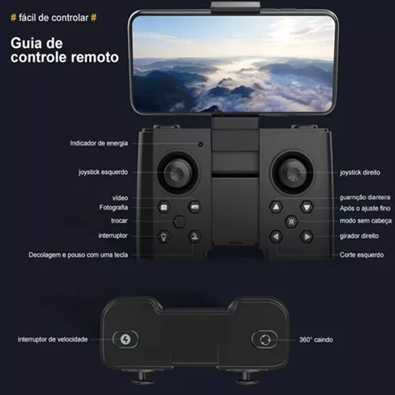 Mini drone aéreo plegable viene en español y portugués