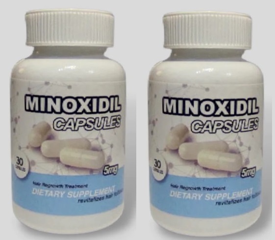 2 frascos de minoxidil 5mg x 30 cápsulas cada frasco.