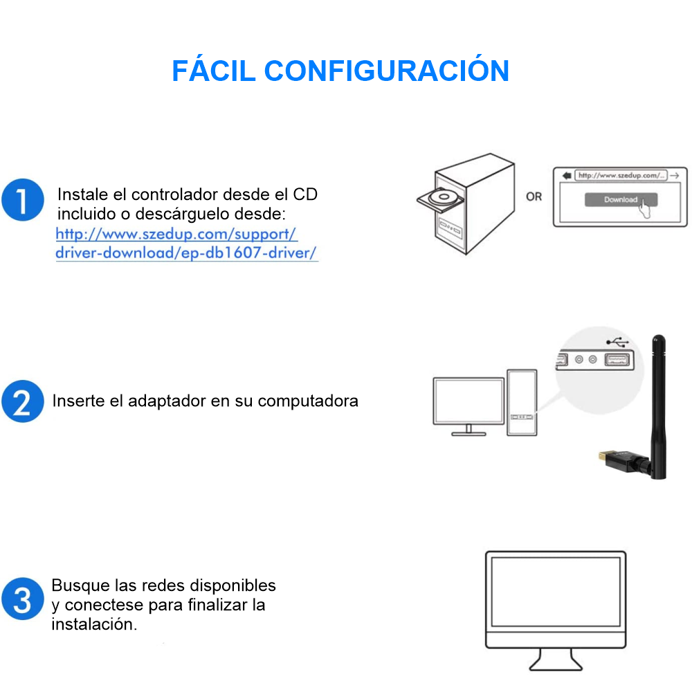 Observación: primero instala el controlador de CD (incluido en el paquete), luego conecta este adaptador WiFi en tu PC.