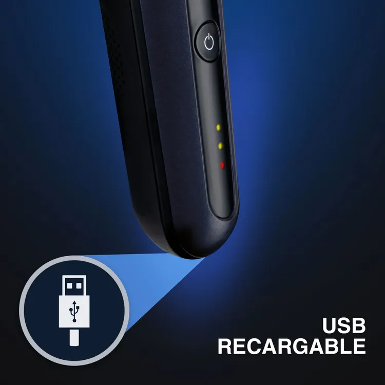 Afeitadora, cable USB-C, cepillo limpiador, estuche de almacenamiento, guía de utilización y cuidados