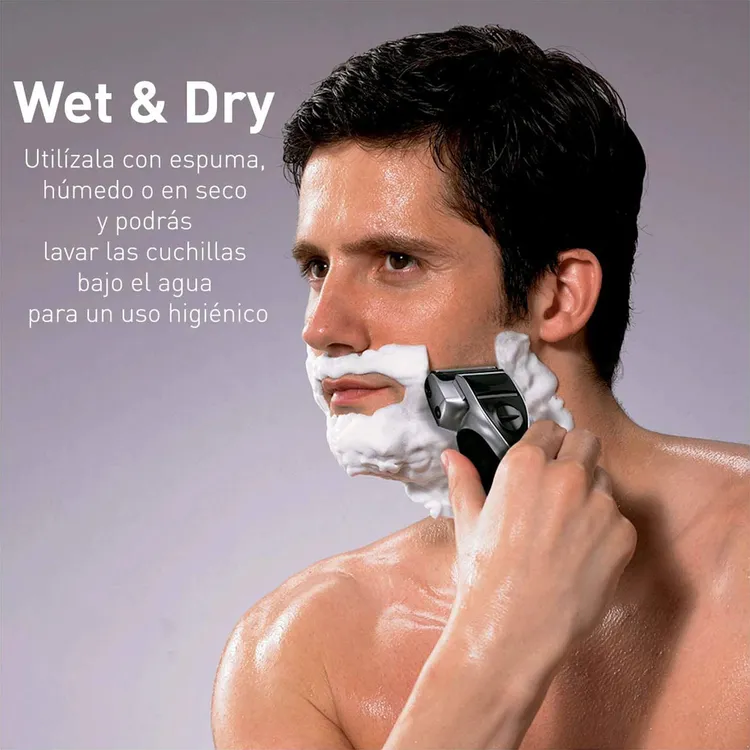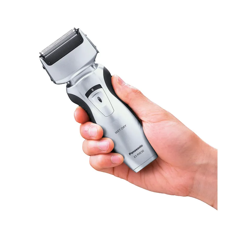 La Afeitadora PANASONIC ES-RW30-S551 recargable con doble cuchilla y tecnología Wet & Dry, podrás afeitarte como te sea más cómodo: húmedo, espuma o seco. El diseño óptimo de los agujeros de aluminio permite cortar a fondo todo tipo de patillas, bigotes y barba, Para una sola cuchilla hay tres patrones de agujeros de aluminio: Uno para rasurar bigotes regulares, uno para bigotes rizados y otro para un afeitado completo.