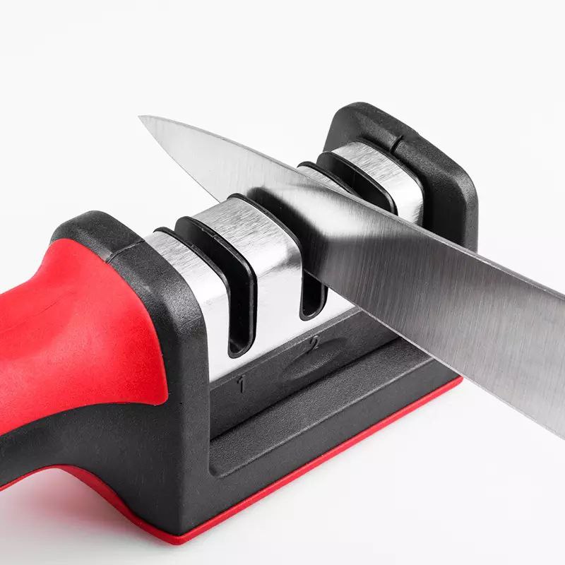 Afila cuchillos de acero con hojas rectas. Está diseñado para proporcionar bordes asombrosamente afilados a sus cuchillos desgastados