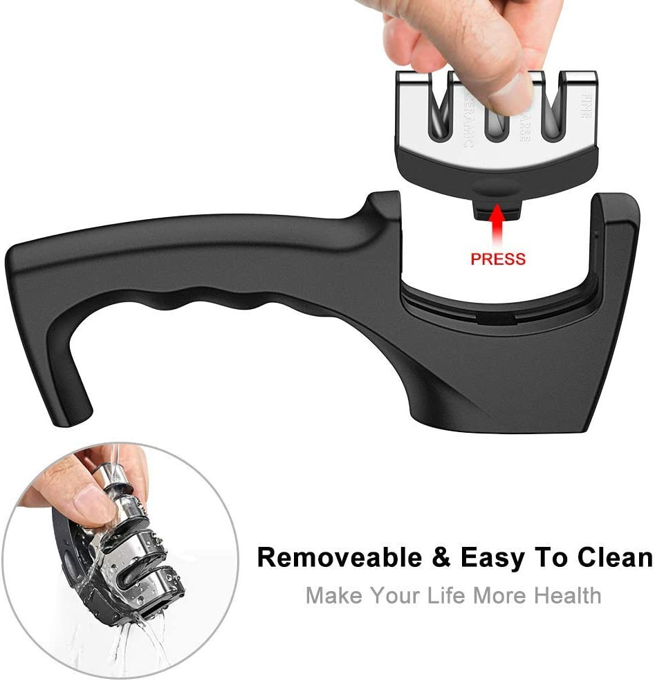 Ahora podrás mantener afilado tus cuchillos de forma rápida y sencilla, así solucionara inmediatamente el problema de que cada vez que se van a usar esos implementos no cortan bien.