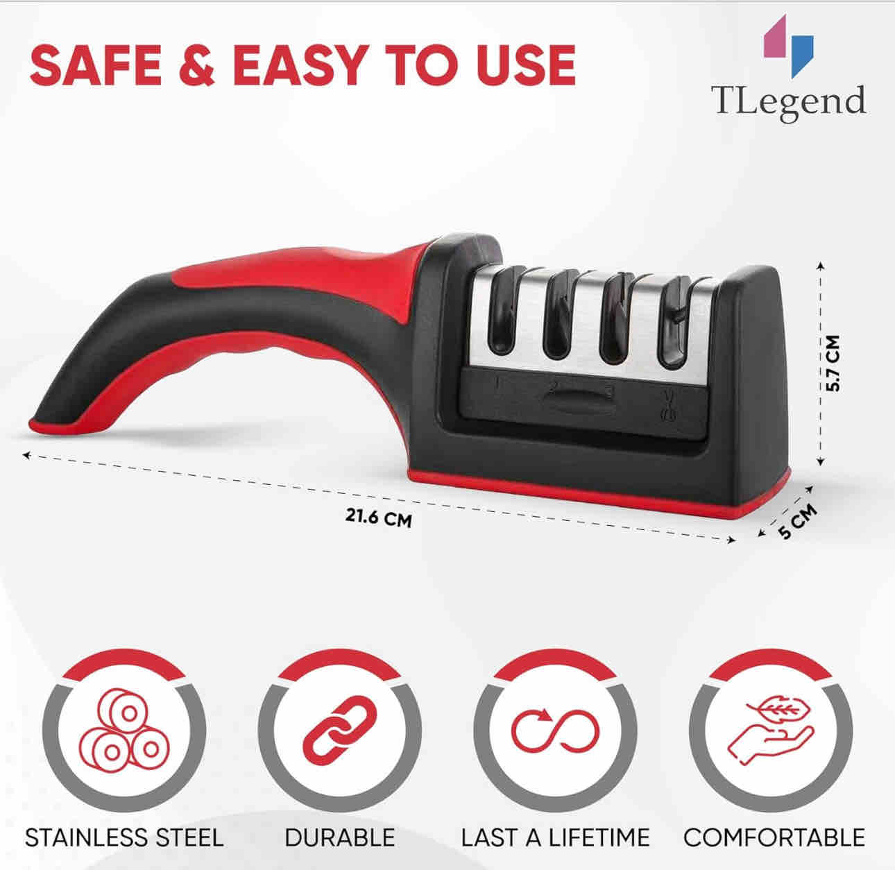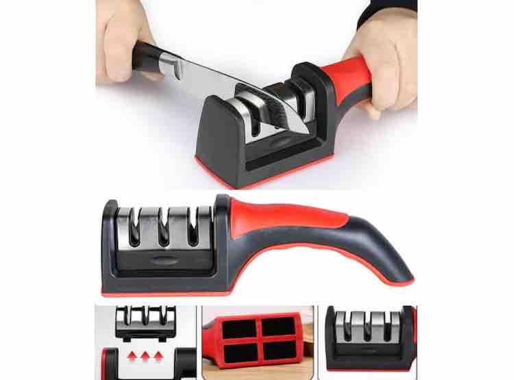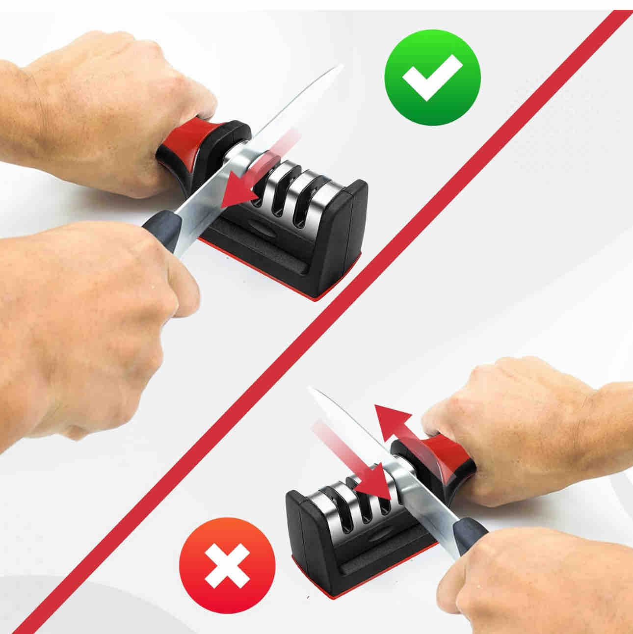 Afiladores de cuchillos para cuchillos de cocina, afilador de cuchillos de cocina 4 en 1 de acero inoxidable, ergonómico y fácil de usar, kit de afilado de cuchillos con ranuras de afilado de 4 etapas, color negro