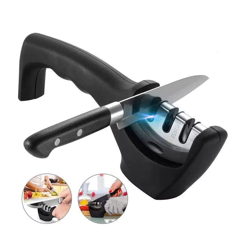 El afilador de cuchillos de 3 etapas manual y ergonomico,es muy practico y muy facil de usar,Un utensilio que en tu cocina no debe faltar
