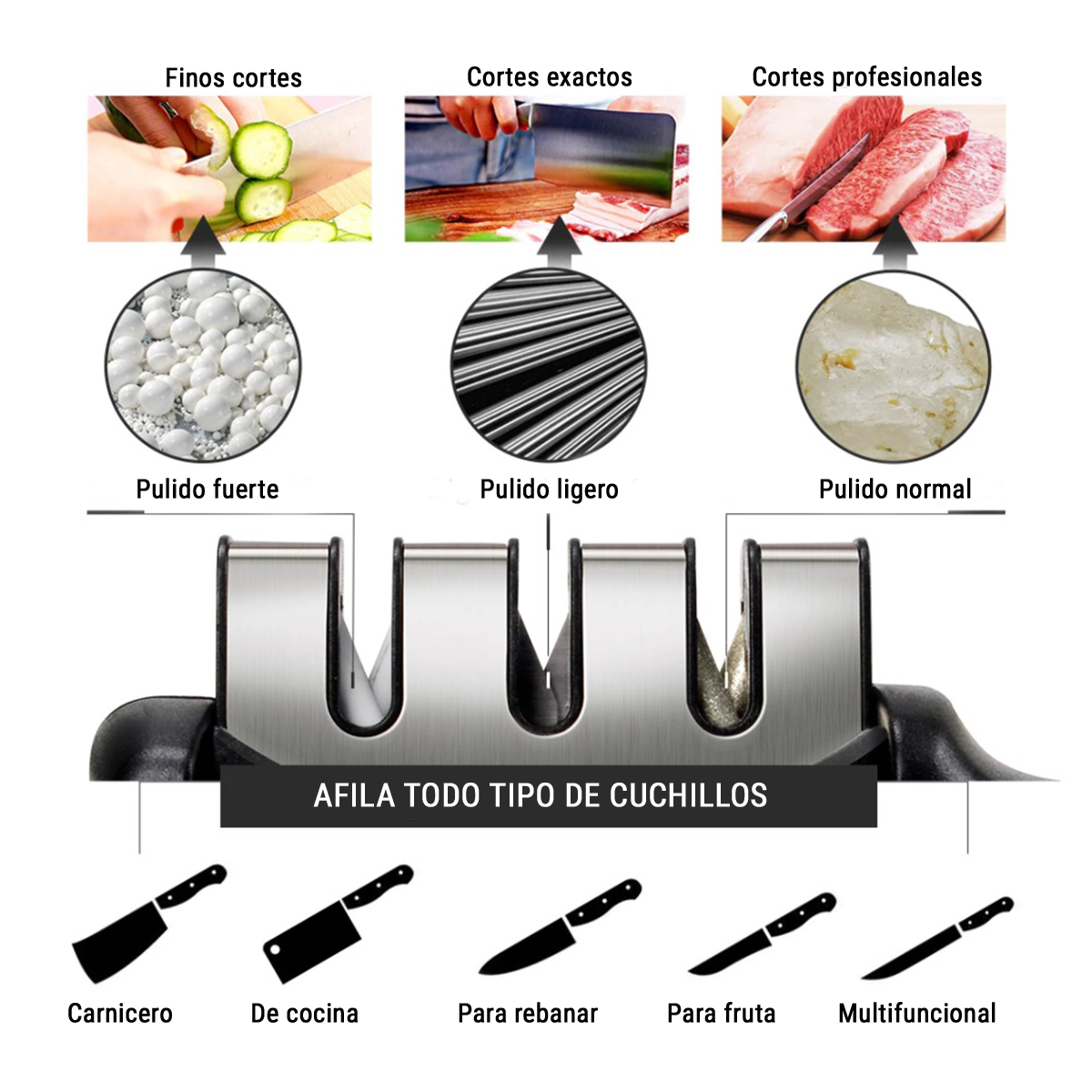 Afilador de Cuchillos Ergonómico Cocina Acero Inoxidable 3 En 1