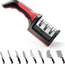 Afilador Manual de Cuchillos de tres pasos, base anti-deslizante, . Diseñado especialmente para afilar cuchillos de acero con hojas rectas, para proporcionar bordes asombrosamente afilados a sus cuchillos. @@Cuchillas de acero de carburo de grano grueso para afilar @Mango con base antideslizante @Varillas de cerámica para afilar @Mango Anatómico